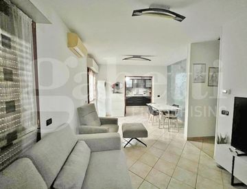L’abitazione si estende su una superficie di circa 110 mq, con interni che si distinguono per arredi di qualità e finiture curate, e si sviluppa su tre livelli:
