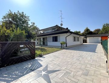 ZV\3- Soliera (IN ESCLUSIVA), in tranquilla zona residenziale comoda ai principali servizi, PRESTIGIOSA VILLA INDIPENDENTE SU LOTTO DI 2.000 m2 composta da ingresso, ampio soggiorno 45 m2, cucina abitabile, disimpegno notte, 2 camere da letto matrimoniali, 2 bagni e mansarda accessibile tramite comoda scala interna ove poter ricavare una terza camera. A completare l’immobile troviamo 2 autorimesse, PISCINA Castiglione 12m x 6m ed un’ampia area cortiliva...