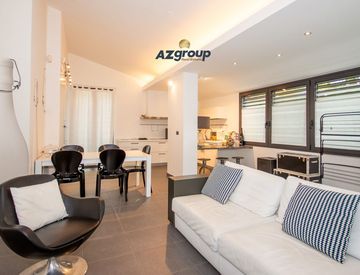 L’appartamento al piano rialzato è arredato con mobilio di pregio su misura e si compone di ampio e luminosissimo living con cucina a vista, camera padronale con bagno privato, spaziosa camera con due letti singoli, cameretta/guardaroba, bagno finestrato con box doccia ed un pratico ripostiglio/lavanderia.
