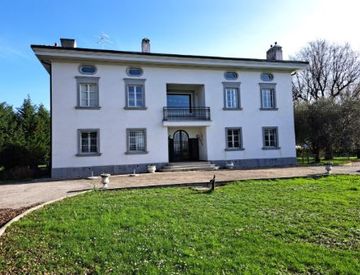 Fabbricato posto all’interno di un’ampia area di pertinenza destinata a giardino, suddiviso in 2 unità immobiliari: il sub. 1 è la parte abitativa privata al primo piano, con ampia soffitta al secondo piano, mentre al sub. 2 c’è una cantina nel piano interrato, gli uffici con servizi e sala riunioni al piano terra