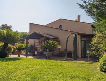 Immersa in un parco protetto di circa sette ettari, tra boschi secolari e prati, questa villa unifamiliare esclusiva è un autentico rifugio di eleganza e storia. L'ingresso, sorvegliato dalla guardiania H24, si apre con un elegante cancello automatico su un viale di tigli che conduce agli spazi comuni: club house raffinata, piscina olimpionica attrezzata e tennis club, il tutto con vista sul Castello di Scorano, custode di epoche etrusche, latine...