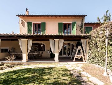Nel prestigioso comprensorio Casal dei Pini a Le Rughe, con servizio di videosorveglianza attivo 24 ore su 24, proponiamo in esclusiva una villa caposchiera di rara eleganza, immersa in un parco privato di circa 2500 mq, con piscina, due indipendenti e una privacy assoluta a pochi passi da negozi e servizi.