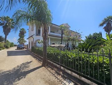Proponiamo in vendita esclusiva splendida villa '' TRIFAMILIARE '' con giardino di proprietà di 5000 mq, impreziosito da ulivi e palme oltre che da un grande fabbricato: falegnameria di 400 mq in cemento. La proprietà è suddivisa in tre ampie unità abitative: al piano terra cucina e tinello, salone triplo, 3 camere e uno studio oltre a due servizi e ampi disimpegni; al primo piano due appartamenti interamente ristrutturati composti ciascuno da soggiorno...