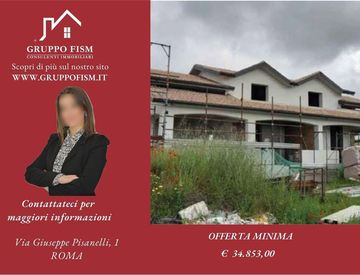 piena proprietà su intera villa bifamiliare allo stato rustico al piano terreno, primo e seminterrato con annesso terreno agricolo, il tutto meglio descritto in avviso di vendita.