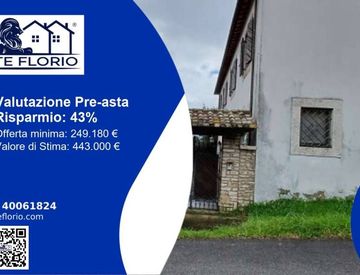 RIFERIMENTO 4447072 Via le Grazie, Orte VT, Italia, Orte Viterbo Diritto di piena proprietà per la quota dell’intero su fabbricato residenziale sito nel Comune di Orte, Via Le Grazie, piani T-1 della superficie abitabile calpestabile mq 295,57, portico mq 36,80, terrazzo mq 18,63, corte esclusiva mq 978,72 con terreno di sedime e pertinenza. Data di vendita 19/11/2025 11:40 Offerta minima 249.180, 00 € valore di perizia 443.000, 00 € La data di vendita...