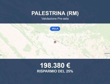 Villa in asta a Palestrina (RM) – Via della Stella 275 La porzione di villa bifamiliare si trova a Palestrina, in Via della Stella 275, in una zona residenziale. L'edificio è stato costruito nel 1978 e si presenta come una villa su tre livelli con un ampio giardino. La zona è ben servita e collegata con i principali servizi. Superficie e distribuzione interna La villa ha una superficie catastale di 382 mq e si sviluppa su tre livelli. Al piano seminterrato...