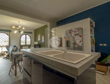 L'esterno, oltre alla presenza del terreno, gode della piscina e della terrazza ubicata al primo piano che affaccia sulla parte antistante della magnifica proprietà con vista panoramica sul borgo di Palombara Sabina. Queste aree esterne sono il fiore all'occhiello della casa, dove trascorrere bellissimi attimi e momenti di relax.
