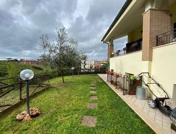 Casal Lumbroso, three-level corner villa for sale. Excellent condition, recent construction. Bright, surrounded by greenery. Entrance, two living rooms with open kitchen. Four bedrooms, three bathrooms, closets, large terrace, garden. Covered parking space. Extensions - Exchanges. Ref. 2498M - Tel. 06.5343497