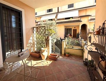 L’immobile si trova a Casalotti, in una zona di recente costruzione risalente al 2015. Si tratta di un appartamento disposto su due livelli, sviluppa una superficie di circa 120 mq e dispone di due ingressi indipendenti. Al piano rialzato si trovano l’ingresso/soggiorno, una camera matrimoniale con accesso a un terrazzino attrezzato con tende da sole, una cameretta e un bagno con doccia in muratura. Completa questo livello un’area esterna dotata di...
