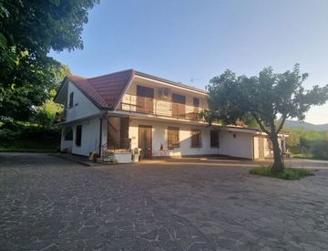 Infissi in legno con vetrocamera, persiane in ferro, porta blindata, vasca e doccia idromassaggio, sistema di allarme, cancello automatico, videocitofono,