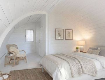 All’esterno troviamo diversi spazi funzionali: un magazzino di 15 mq pavimentato e con soffitto in legno, un ampio portico con possibilità di essere chiuso e utilizzato come giardino d'inverno, due pod per glamping con tegole canadesi di produzione lituana. Questi ultimi rappresentano un’opportunità aggiuntiva per chi desidera ospitare turisti, creare un angolo wellness o sviluppare un'attività extra reddito.