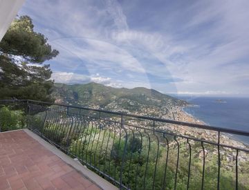 Alassio, sulla collina di ponente, in posizione dominante, con vista su tutto il golfo, si vende una grande villa su più livelli, con tre appartamenti autonomi.