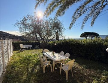 Villetta semi-indipendente di circa 110 mq su due livelli, con vista mare aperta, giardino privato e ampio piazzale carrabile.