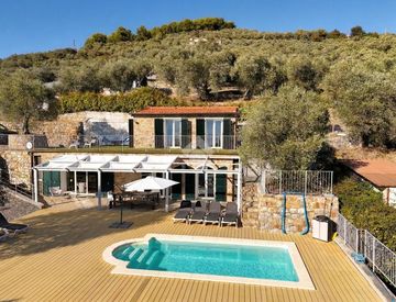 Immersa nella quiete della campagna ligure, circondata da ulivi secolari e con un'esposizione soleggiata a sud-ovest, questa villa di recente costruzione (2016) unisce comfort moderni e fascino mediterraneo.