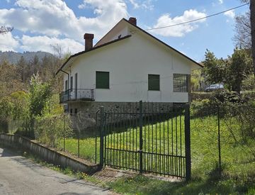 villa fine anni ’60, su due piani più sottotetto, indipendente sui quattro lati e con ampio terreno circostante a prato e giardino completamente recintato e con accesso carrabile oltre a due porzioni di terreno, immediatamente prossime, ad orto e bosco.