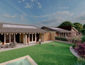 Inoltre, la villa è dotata di pannelli solari e riscaldamento a pavimento con pompa di calore, assicurando un elevato standard energetico con classe A4. Grazie all'orientamento nord, sud, est e ovest, gli ambienti sono sempre luminosi e ben ventilati.