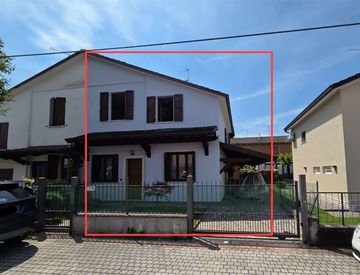 Trattasi di porzione di villetta bifamiliare composta da piano terra con soggiorno-sala, disimpegno, cucina, bagno, tettoia e corte esclusiva. Al piano primo troviamo due camere, due disimpegni, balcone, un bagno, un w. c. /lavanderia e un locale guardaroba.