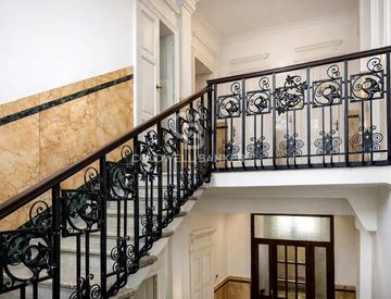 - Restauro conservativo dell’atrio, della scala in ferro battuto, degli affreschi, della pavimentazione in parquet, delle cementine e delle porte interne;