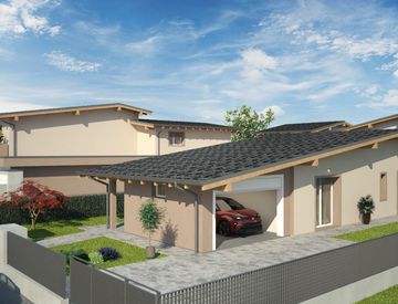 CARAVAGGIO V211: In un piccolo contesto di 3 ville di nuova realizzazione in classe A4, in zona tranquilla e circondata dal verde a pochi minuti dal centro ed a meno di 1km dal casello autostradale della Bre-Be-Mi, proponiamo una villa singola. La villa di mq 115 sviluppata tutta al piano terra è composta da soggiorno con angolo cottura affacciati su un porticato di mq 15, doppi servizi, tre camere da letto, box doppio, locale tecnico, e un giardino...