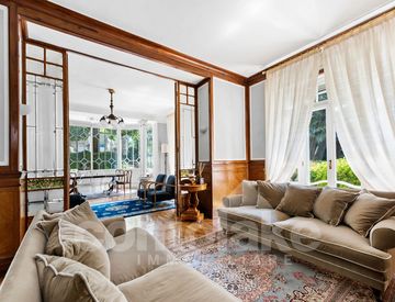 LAKE COMOCernobbio vicinanze magnifica Villa d'epoca in posizione fronte lago inserita in una stupenda cornice di verde, curata nel dettaglio con magnifica vista lago: ingresso, ampio soggiorno con camino, sala pranzo, salotto con vetrata in stile Liberty, cinque camere, quattro bagni, studio, sala giochi e locali accessori (lavanderia, cantina). Ampi terrazzi e grandi vetrate con vista panoramica; splendido giardino all' inglese ben piantumato di...