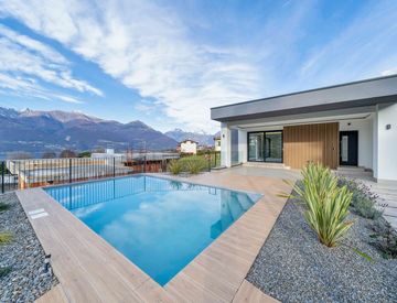 Scopri questa straordinaria villa in nuovissima costruzione, un vero gioiello di design moderno situato in un contesto tranquillo e panoramico. Con una superficie commerciale di 284 m² e un grande giardino di pertinenza di 1.000 m², questo immobile è perfetto per chi cerca il massimo del comfort e della funzionalità. La piscina a sfioro offre una vista mozzafiato sul lago, creando un'atmosfera di relax e bellezza.