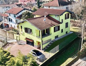 In un angolo riservato e silenzioso di Leggiuno a due passi dal lago Maggiore, dove la luce accompagna ogni momento della giornata, proponiamo una villa indipendente libera su quattro lati, circondata dal verde e pensata per chi desidera vivere la casa come un rifugio di benessere.