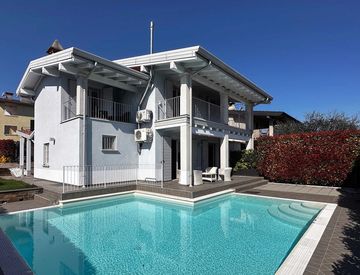 All’esterno, la villa è valorizzata da una bella piscina privata con zona solarium, perfetta per momenti di relax e convivialità, oltre a un curato giardino esclusivo e un portico vivibile che invita a godere appieno della tranquillità del contesto.