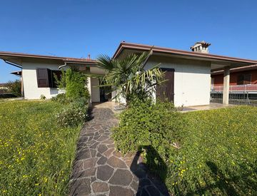 La villa è così disposta: ingresso che porta alla zona giorno, dove troviamo un ampio soggiorno con camino e una cucina abitabile che si affacciano ai portici, entrando nella zona notte, vi sono tre spaziose camere matrimoniali e due bagni finestrati.