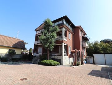 Il terzo appartamento, mansardato al secondo piano, offre tre locali e servizi, con un ampio terrazzo coperto che regala una vista incantevole.
