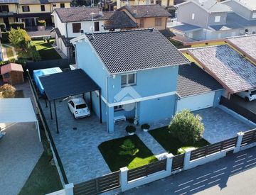 Eleganza e design in un'affascinante villa su due livelli con 293 mq di giardino privato e box doppio in larghezza di circa 37 Mq.