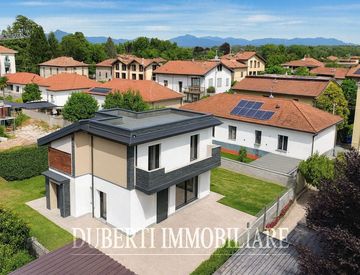 In posizione tranquilla e residenziale, proponiamo una villetta di nuova costruzione in classe energetica A4, sviluppata su due livelli e dotata di giardino privato.