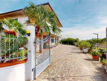 OSIMO - Zona Abbadia - Vendiamo splendida villa singola degli anni 2000 libera su quattro lati con CORTE PRIVATA che circonda l'intera soluzione ubicata nella via più riservata del paese, con affaccio panoramico a 360 gradi dalle campagne al mare. L'immobile ci accoglie tramite il doppio ingresso indipendente, al primo piano troviamo il salone doppio con terrazzo super panoramico, la cucina abitabile, 3 camere da letto di cui due matrimoniali, il...