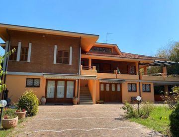 La villa è immersa in un bellissimo e curatissimo giardino di 2500 mq, gode di ampi porticati e spazi esterni per pranzi e cene all'esterno, con vista giardino e piscina.