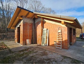 Il primo è il fabbricato abitativo, di circa 45 mq, attualmente al grezzo interno ma con tetto nuovo e struttura in muratura già realizzata. È composto da ingresso su cucina, camera e bagno da realizzare. Rappresenta una base solida da completare secondo le proprie esigenze, trasformandolo in una piccola abitazione immersa nella natura.