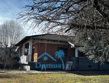 Frossasco, zona bivio, comoda al collegamento tra Pinerolo e Torino, villetta indipendente 4 lati disposta su 2 livelli circondata da un parco piantumato di 3.500 mq, al piano rialzato Ingresso su salone e cucina con affaccio su terrazzo, 3 camere in parquet, doppi servizi, al piano interrato ampio locale sgombero uso tavernetta e box auto. € 214.000.