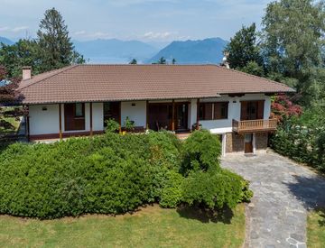 La proprietà oggetto di vendita è completamente indipendente, è in posizione dominante e riservata ma vicino al centro paese e ai servizi primari, è circondata da un ampio giardino con belle piante di alto fusto, gode di una panoramica vista sul lago Maggiore e sulle vette alpine che lo circondano.