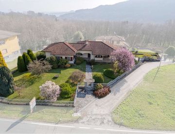 Con accesso diretto dalla strada Provinciale del Vergante, rarissima opportunità di luminosa e signorile villa che sviluppa la parte abitativa su un unico livello al piano terreno, inserita in un giardino di circa 2160 mq. a prato recintato e piantumato.