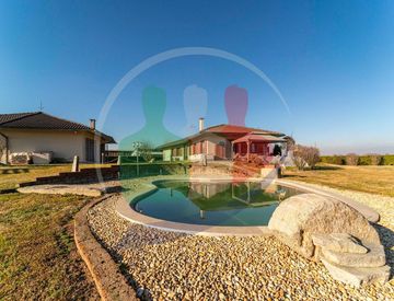 Il fabbricato principale abitativo consiste in una soluzione di 250 mq con affaccio sul giardino composto da: ingresso, zona giorno con salone doppio, area pranzo, ampia cucina abitabile, una stanza aggiuntiva adibita a lavanderia/stireria ed uno spazioso bagno.