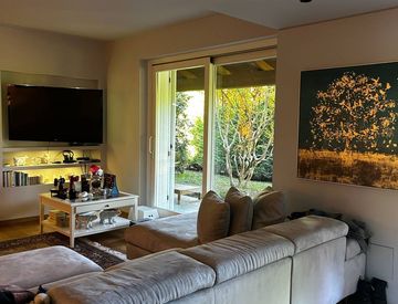 L'appartamento al piano terra offre un luminoso salone con cucina a vista, caratterizzato da grandi vetrate che regalano una vista mozzafiato sul giardino. Con tre camere da letto e due bagni, ogni angolo è pensato per garantire il massimo comfort. Non mancano un armadio spazioso e uno studio perfetto per rilassarsi o divertirsi.