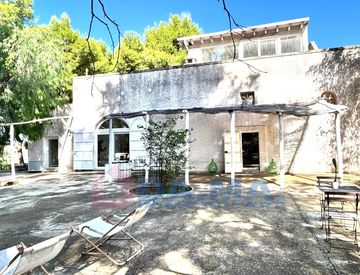Immersa in circa tre ettari di uliveti, bosco e macchia mediterranea dispone di una grande cucina luminosa con volte a stella e importanti piani in pietra locale, cuore della casa e spazio conviviale per cucinare e condividere momenti insieme.