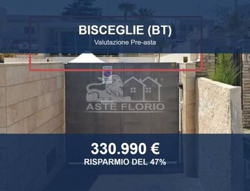 Villa in asta a Bisceglie (BT) – Via Vito Siciliani 12/C (CAP 76011) Asta di villetta in bifamiliare situata a Bisceglie, in via Vito Siciliani n. 12/C, in zona residenziale-turistica "Salsello", a breve distanza dalla spiaggia "La Salata". Superficie e distribuzione interna L'immobile si sviluppa al piano primo ed è composto da soggiorno, cucina, corridoio, ripostiglio, bagno padronale, due stanze da letto e bagno di servizio. Dispone di un loggiato,...