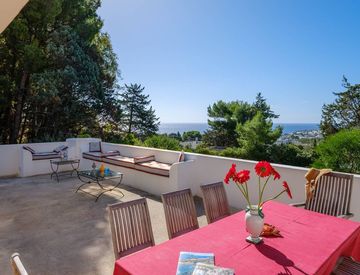 Contornata da un lato da pini marittimi e abeti e sull'altro da tipica vegetazione con ulivi, la proprietà si apre su un ampio terrazzo panoramico dal quale si respira la magia del Finis Terrae. Qui, il profumo resinoso degli alberi si mescola alla brezza marina, portando con sé l’eco delle onde e il canto discreto del vento tra le fronde.