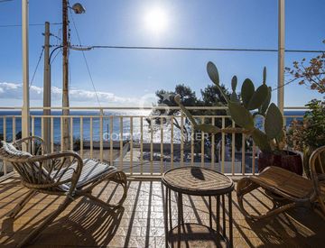 Dalla veranda antistante una scala esterna conduce in maniera autonoma all'appartamento del primo piano di 120 mq composto da un soggiorno, una cucina abitabile, due camere da letto e due bagni. L'abitazione affaccia su un comodo terrazzo che regala un vista mozzafiato sul mare di Castro e su tutta la litoranea.