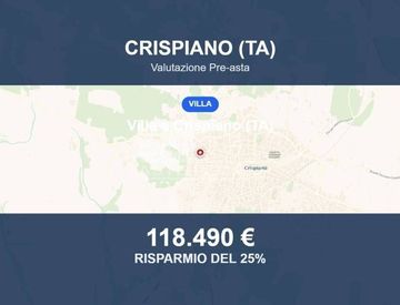 Villa in asta a Crispiano (TA) – Via Arturo Toscanini, 17, 74012 Crispiano TA, Italia Abitazione ad uso villino situata a Crispiano (TA), con accesso da Via A. Toscanini n. 17. L'immobile si trova in una zona residenziale tranquilla, ben collegata ai principali servizi e infrastrutture del comune. Superficie e distribuzione interna L'immobile ha una superficie lorda complessiva di circa 197 mq. Il piano terra è composto da un ingresso-corridoio, quattro...