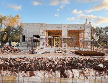 Le finiture interne ed esterne sono realizzate con materiali lapidei naturali. La pavimentazione è in Pietra di Trani formato 40 cm, utilizzata in continuità tra interno ed esterno. I rivestimenti murari sono in pietra albanese a correre da 30 cm, elemento che caratterizza l’identità costruttiva dell’immobile. Buona parte della villa e' rivestita in pietra.