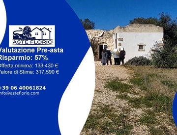 Riferimento: 4534865 Contrada Paradiso snc. , 72017 Ostuni Brindisi; Villa singola a Ostuni, Contrada Paradiso snc, della superficie commerciale di 175,72 mq per la quota di 100/100 di piena proprietà (*** DATO OSCURATO ***) l'immobile e' ubicato in zona agricola, dista circa 6 km dal centro abitato di Ostuni. insiste sulla particella 183 del foglio 205 del comune di Ostuni di superficie mq 3924, destinata a giardino di pertinenza. Data di vendita:...