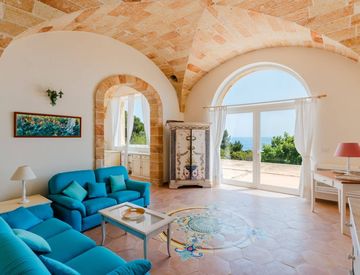 La Villa è interamente costruita in carparo e presenta le bellissime volte a stella, tipiche dell'architettura tradizionale salentina. Un ulteriore tocco di classica eleganza è dato dai pavimenti in Cotto di Vietri, con inserti smaltati.