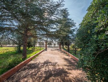 Circondata da un terreno di proprietà esclusiva esteso per 10.000 metri quadri, interamente piantumato con alberi di mandorle(300 ca. )