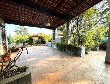 La villa con doppio accesso carraio è circondata da un vasto spazio esterno di oltre 1700mq, con giardino e terrazzi. Sempre all'esterno, troviamo anche una dependance dotata di cucina, forno in pietra e un terrazzo con tettoia e forno a legna per godere di piacevoli giornate all'aperto.