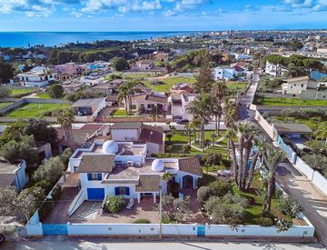 Questa splendida villetta si trova in una zona residenziale estremamente tranquilla, a pochi chilometri dal mare e dal centro città. Unica nel suo genere, colpisce per lo stile elegante e i colori che richiamano le autentiche atmosfere mediterranee.
